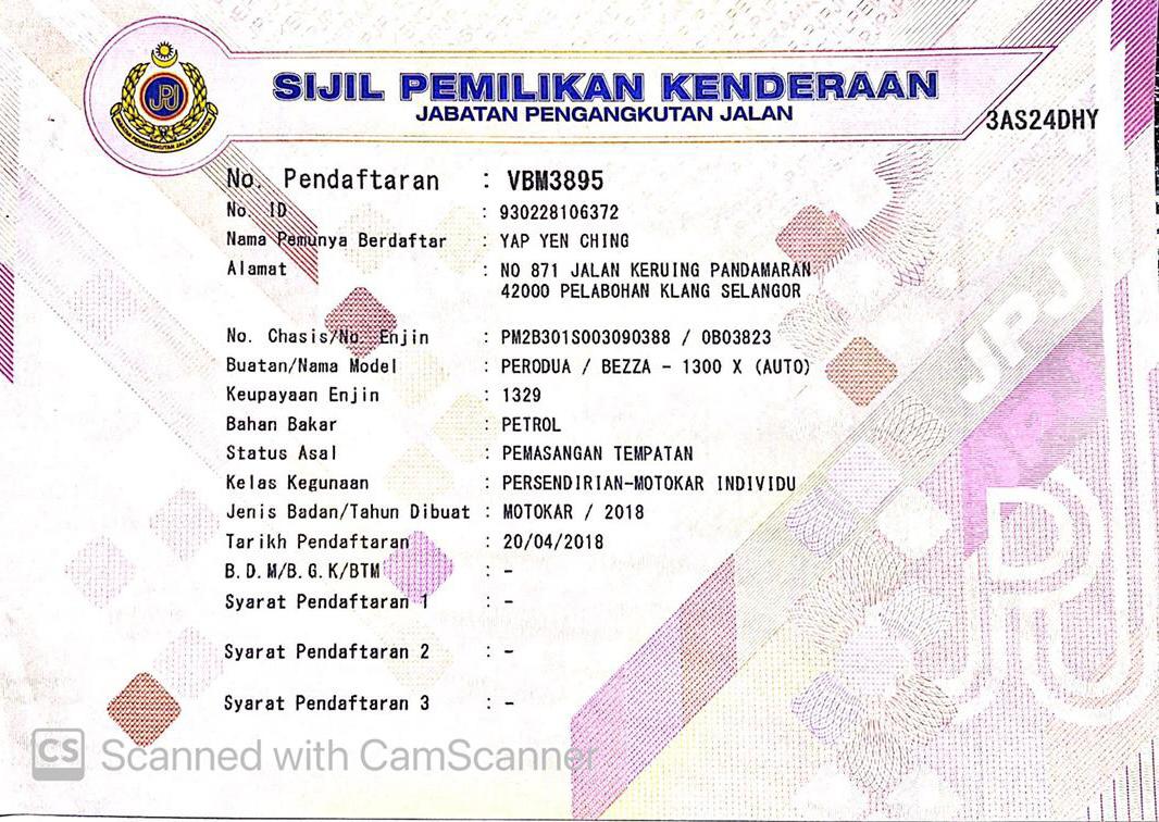 Tahun Terpakai Registered 2018 Year