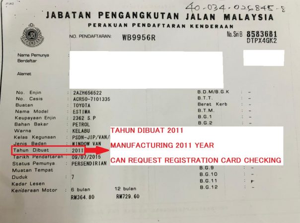 Tahun Terpakai Registered 2015 Year