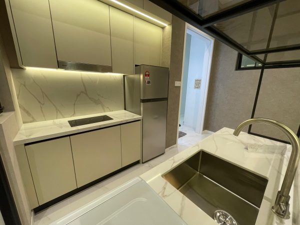 Partially furnished - Kitchen cabinet, kitchen hood and hob, aircond for living room and all rooms