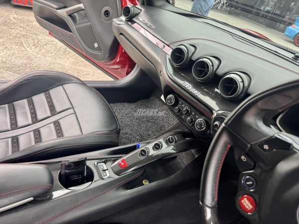 The cabin is equally considered, featuring black leather with red contrast stitching, extensive carbon trim, a carbon drive zone with LED steering wheel, and the highly desirable passenger display. Comfort and usability are elevated with JBL surround sound, making this a car as rewarding on long journeys as it is on spirited drives.