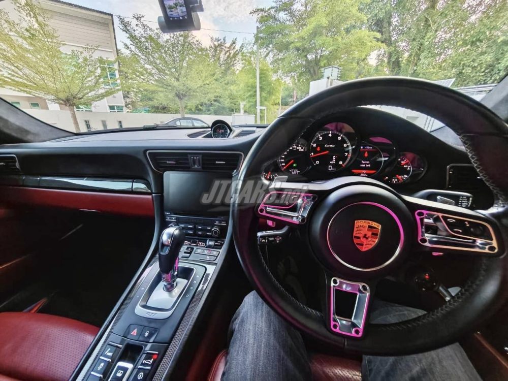 The interior is richly appointed with full leather upholstery featuring contrast stitching, complemented by carbon interior trim for a refined yet motorsport-inspired feel. Driver engagement is enhanced by the multifunction GT sports steering wheel, while 14-way electric seats with memory provide exceptional comfort and support. Every detail reflects Porsche’s commitment to craftsmanship and performance.