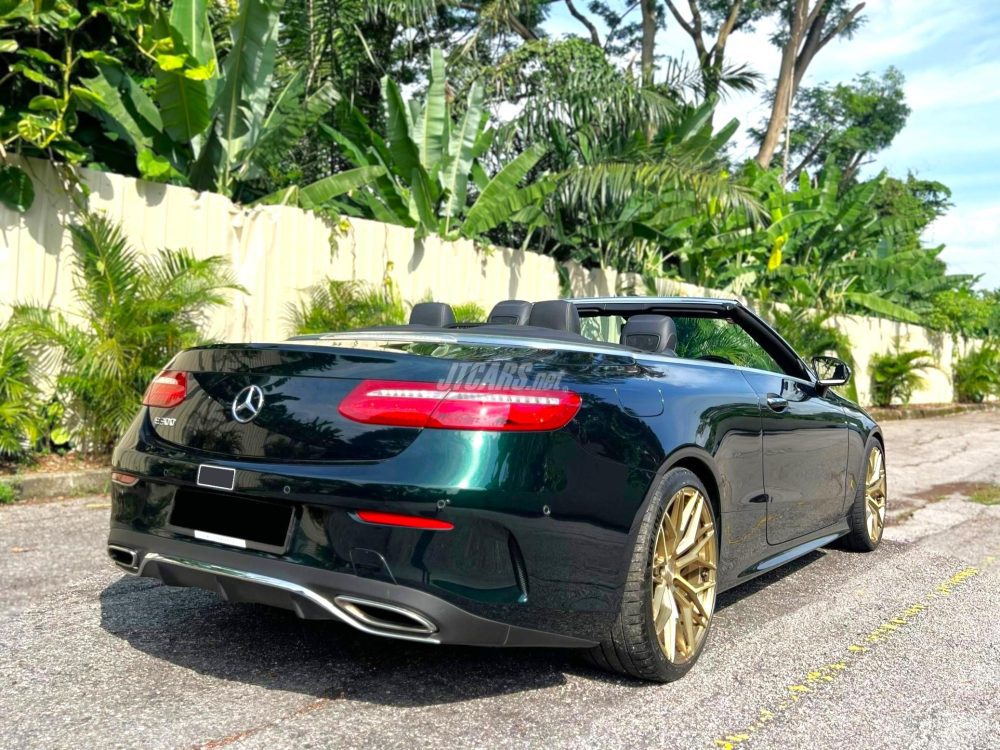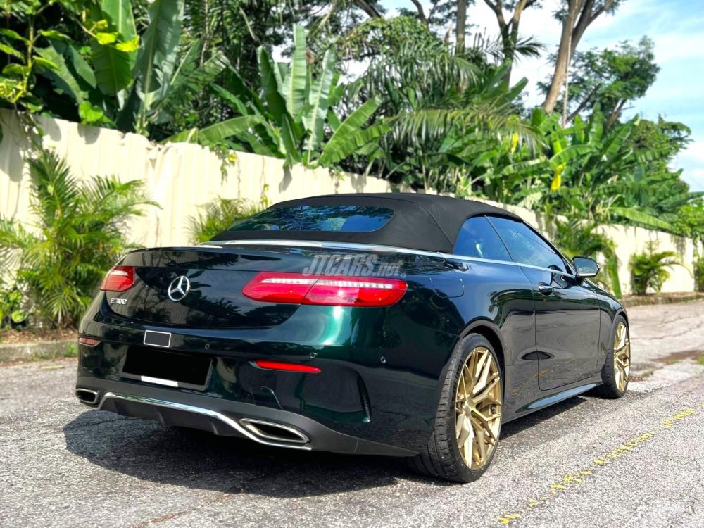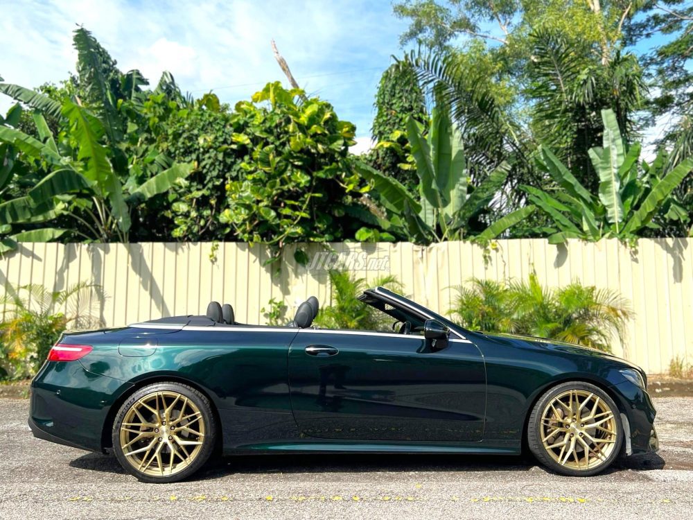 An attractive and rare E300 Convertible factory finished in Emerald Green with custom DRC forged wheels in gold. The owner has upgraded to full digital dash with blind spot assist. The ecu has also been remapped by DNA tuning increasing its sprinting prowess. It comes with the AMG Styling Package Upgrade, Burmester Premium Sound, Memory Sport Seats with Air Scarf, Keyless Go, Ambience Illumination and more. The car is accident free. The seller notes that the car is operating fine with no major work needed.