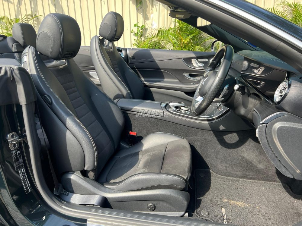 Good Cond., Neat Interior, Rare E300 Convertible, Factory Finished Emerald Green Metallic, Black Open-Pore Ash Wood Trim, AMG Styling Package, Keyless Go, Analog Clock, Multifunction Steering Wheel, Burmester Premium Sound, Memory Sport Seats with Air Scarf System, Rear Cupholder, Ambience Illumination, Upgraded Full Digital Dash with Blind Spot Assist, ECU Remapped by DNA Tuning, Custom DRC Forged Wheels in Gold, Accident Free, Done 52k kms.