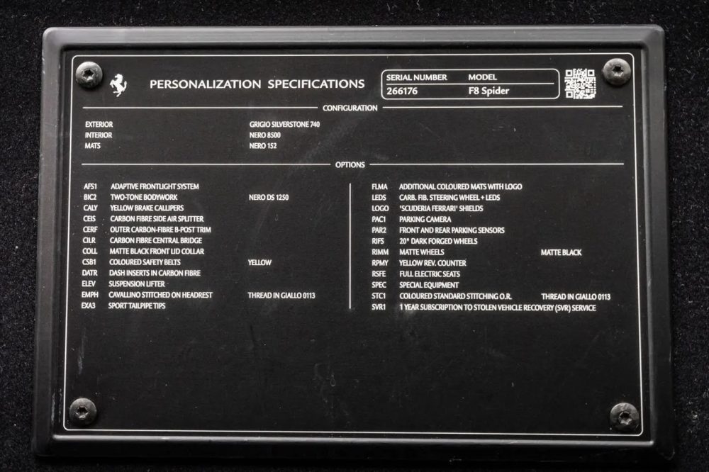 2021 FERRARI F8 SPIDER CARBON CAMERA LIFTER FULL PPF