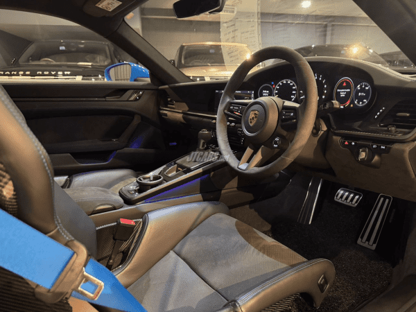 This example is specified with a focused, performance-led configuration, including Porsche Ceramic Composite Brakes, PDLS headlamps, Sport Chrono, and the highly sought-after Clubsport Package. Weight-saving elements feature prominently, with a full carbon interior, signature carbon GT3 roof, and carbon bonnet reinforcing its motorsport intent and visual presence.