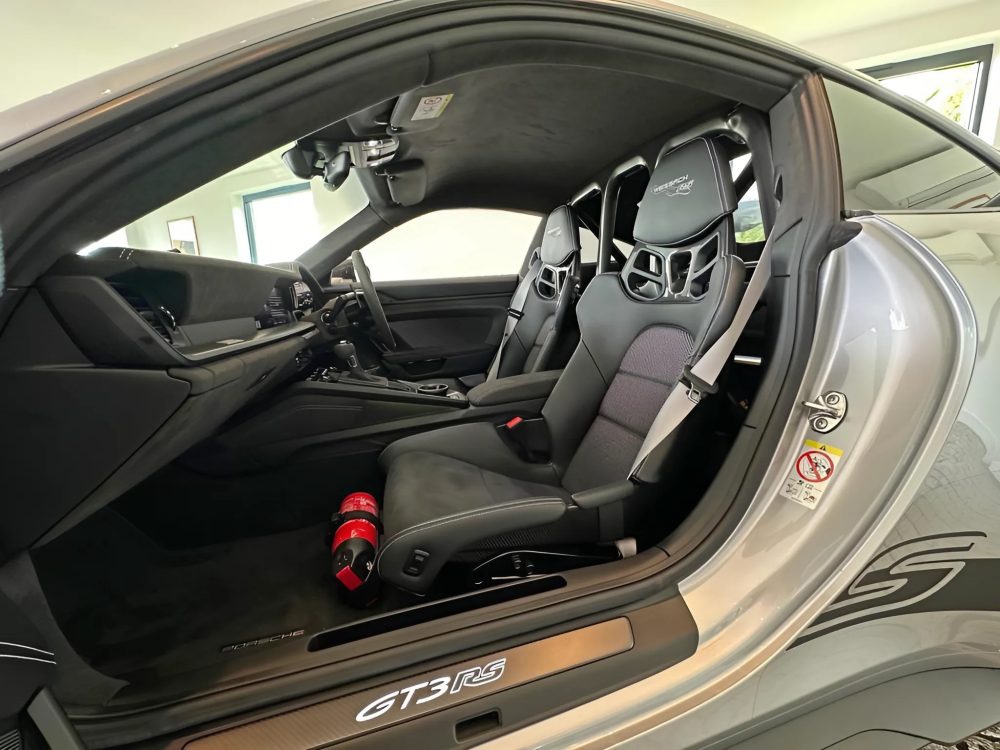 - lightweight motorsport hand-held fire extinguisher (extinguishing agent: 2kg FX G-TEC) with aluminium bracket and six-point racing harness in Black for driver's side.