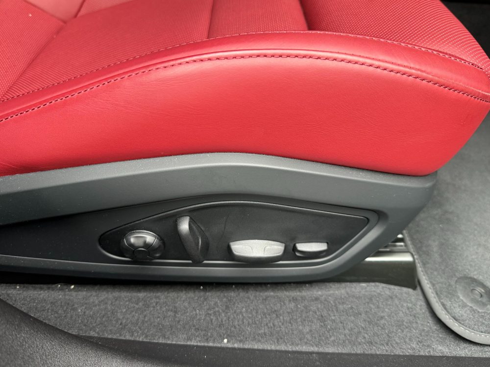 Black/Bordeaux Red two-tone leather interior with smooth-finish leather