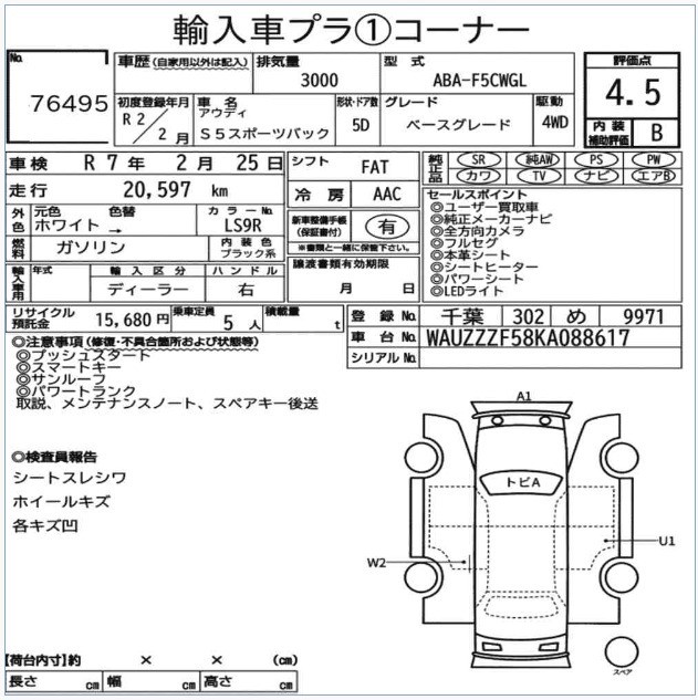 Unreg 2020′ Audi S5 3.0 SportBack S.Line 21Km Mileage. Grade 4.5 -8617