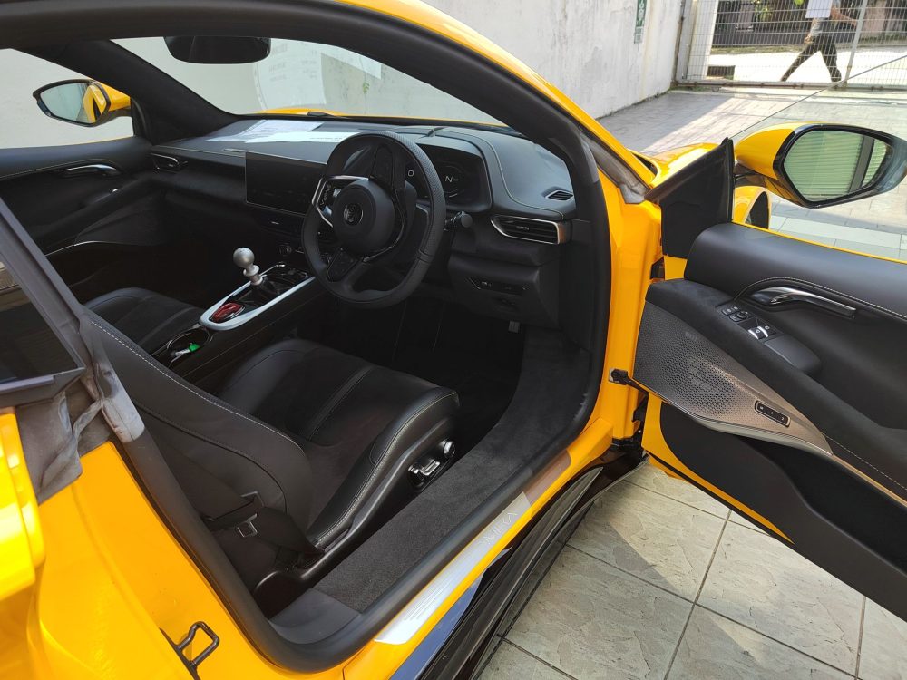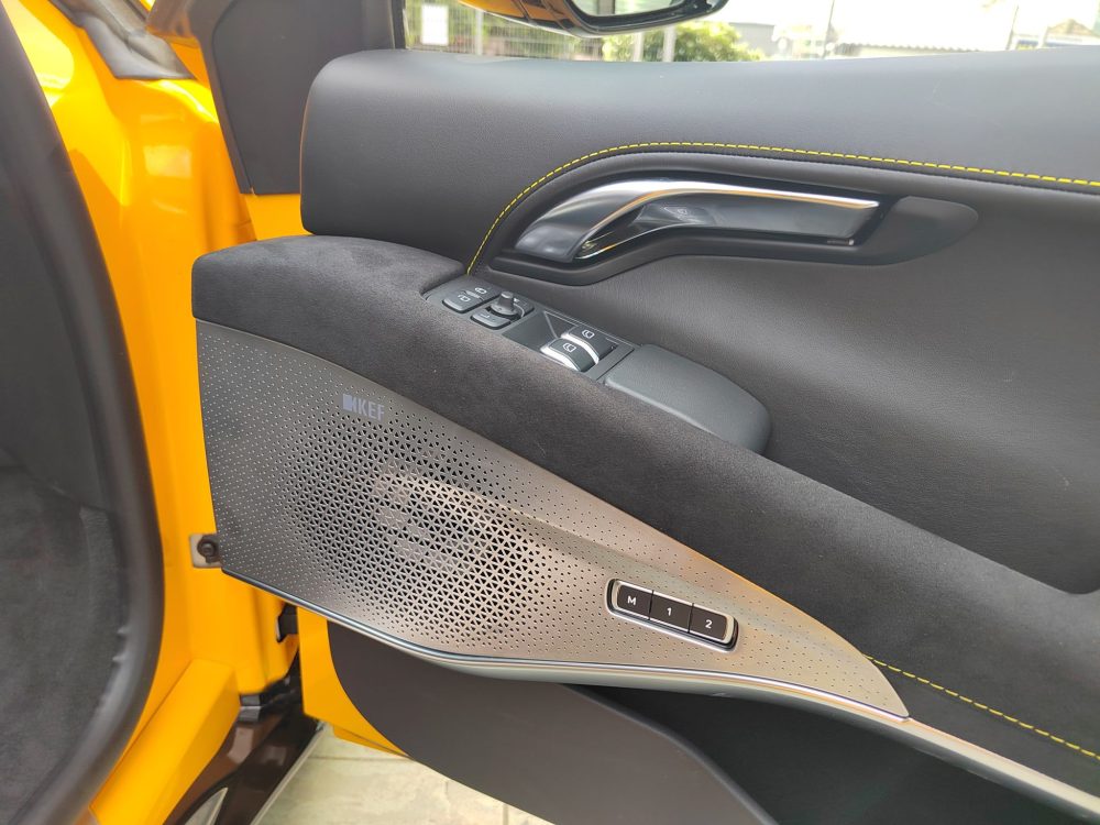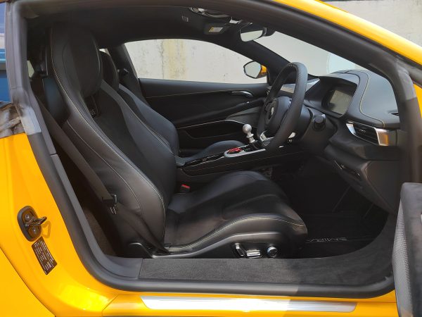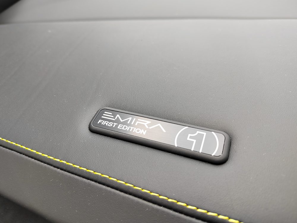 The Emira’s cabin is a 3.5 litre V6 engine with an Edelbrock 1740 supercharger. The Toyota 2GR-FE is a motor that Hethel is very familiar with, and here, it makes 405 PS (400 hp) and 420 Nm with a six-speed manual gearbox, as specified here. There’s a six-speed torque converter automatic option with an extra 10 Nm, but you won’t want that, right? Right? Insert Anakin-Padme meme. Both Aisin transmissions will take the Emira to 290 km/h, but the auto is a tenth quicker in the 0-100 km/h sprint (4.2 seconds) than the DIY gearbox (4.3 seconds). The auto comes with shift paddles, and the manual comes with Lotus’ exposed gearshift mechanism, although it’s covered with mesh grilles here and is therefore nowhere as spectacular as the original idea. Eventually, there will be a 2.0L AMG turbo-four with a DCT, but it won’t come so soon.