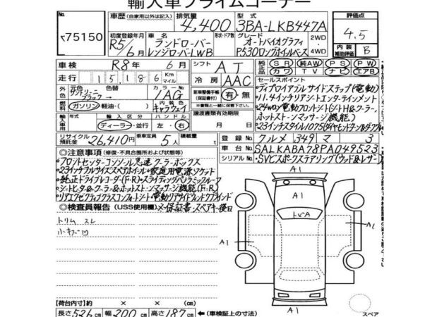 Unreg 2023′ Range Rover Vogue P530 AutoBiography L.W.B Grade 4.5 -9523