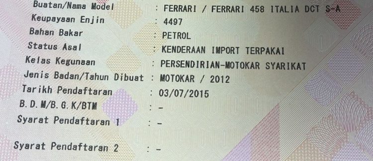 2) Used 2012' Ferrari 458 Italia