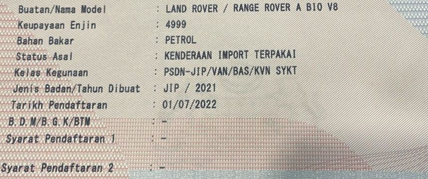 10) Unreg 2023' Vogue P530 AutoBiography (L.W.B) Grey & Black